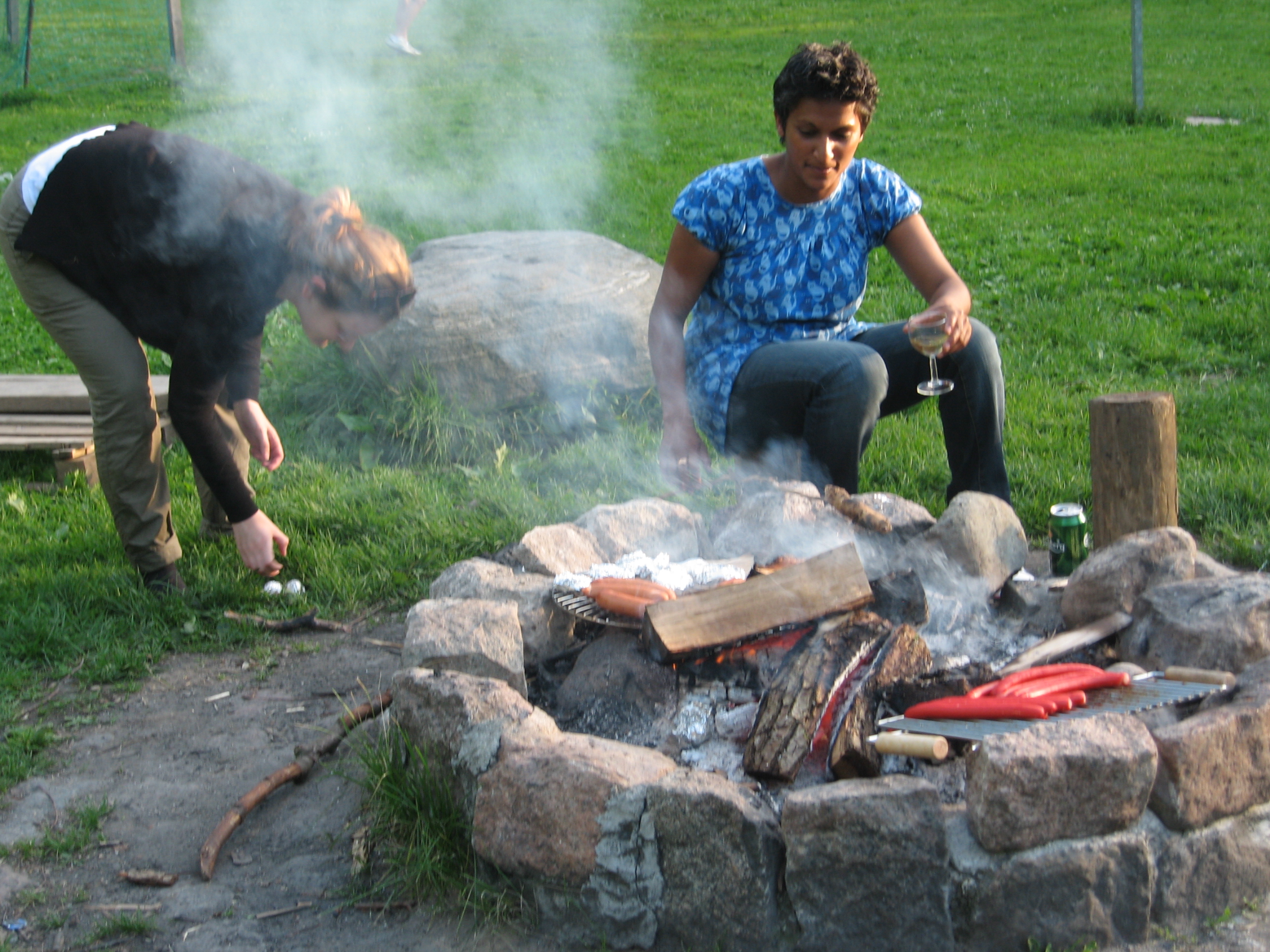 Jeg har sagt farvel mine unger. Med lidt sug i maven over, at der nu går to måneder, før jeg ser dem igen. Før jeg kan give dem bamsekram og mærke dem igen. Vi har jo gjort det før. Men jeg får altid det der lidt surrealisttiske sug i maven, når det pludselig går op for mig. At der faktisk nu går to måneder, før vi står overfor hinanden igen. Jeg elsker at komme hjem til dem. Jeg elsker gensynene. Og jeg kommer til at savne dem. Derude i Himalayas ødemarker. Men hvor er det godt at vide, at de er der. Vi holdt vores lille sommerfest i aftes med bål og snobrød og det hele (undtagen skumfiduser, som jeg havde glemt at købe). Småungerne tøffede rundt og legede fredsommeligt til klokken halv elleve. Og så faldt de bare udmattede sammen i sengene og sov hele natten. Mens vi andre drak rødvin og grappa.