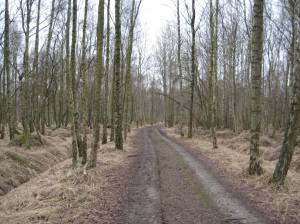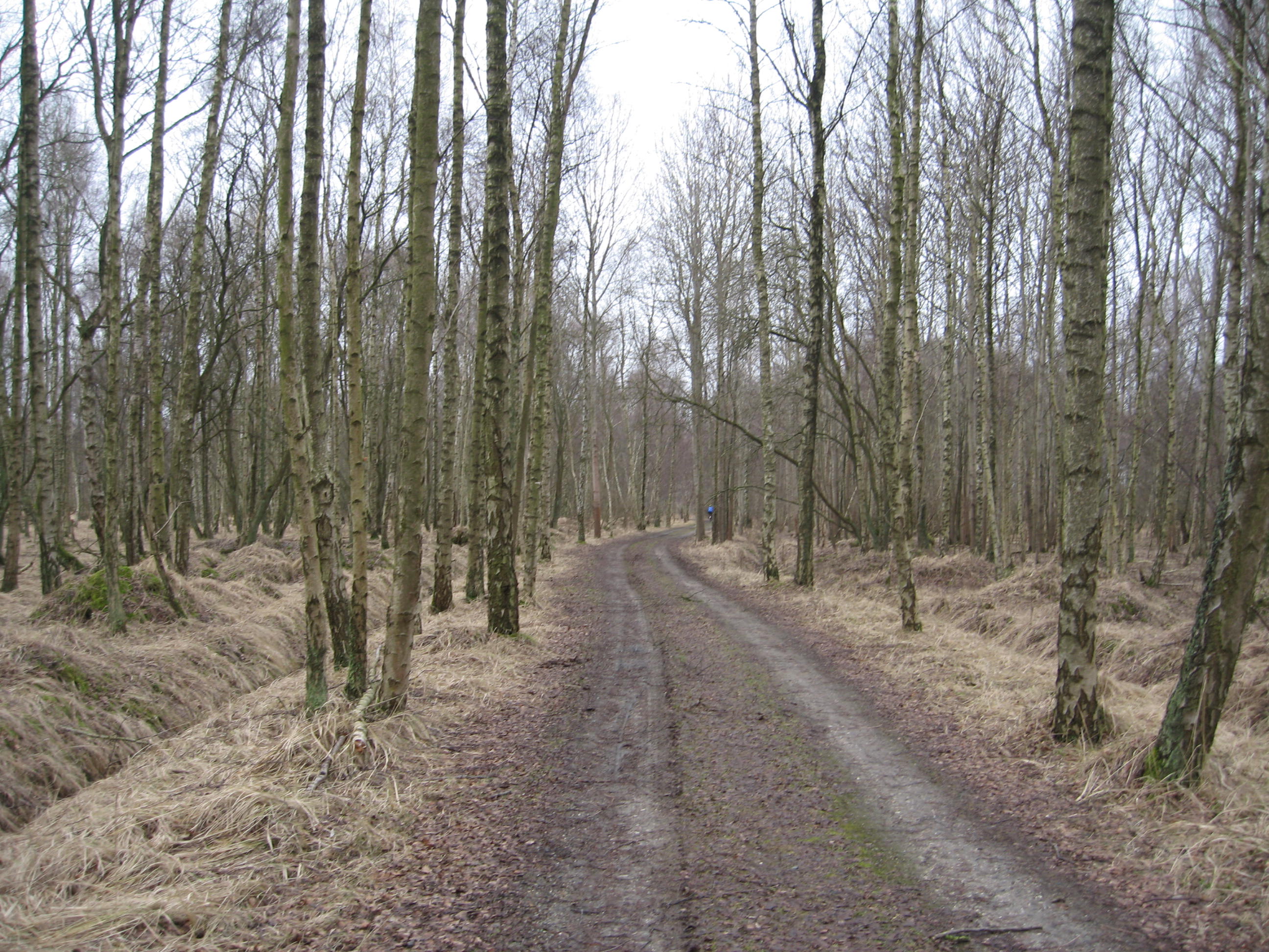 Ikke nogen imponerende skov, men dog mere end en enkelt række træer. Birk. Som jeg nok skal få på hadelisten om en måneds tid, når de begynder at spy deres giftige pollen ud. Men den tid, den sorg (eller galde).