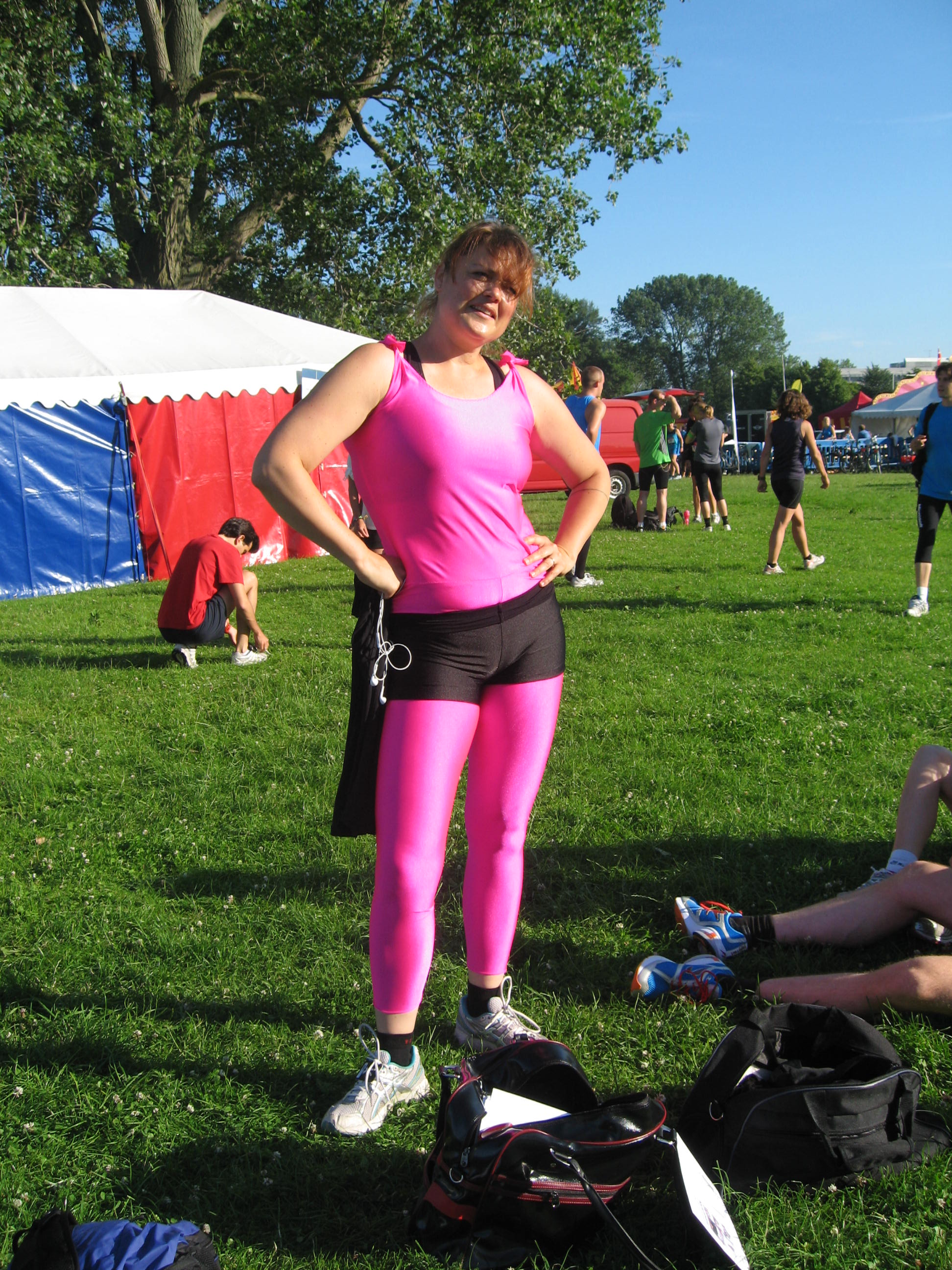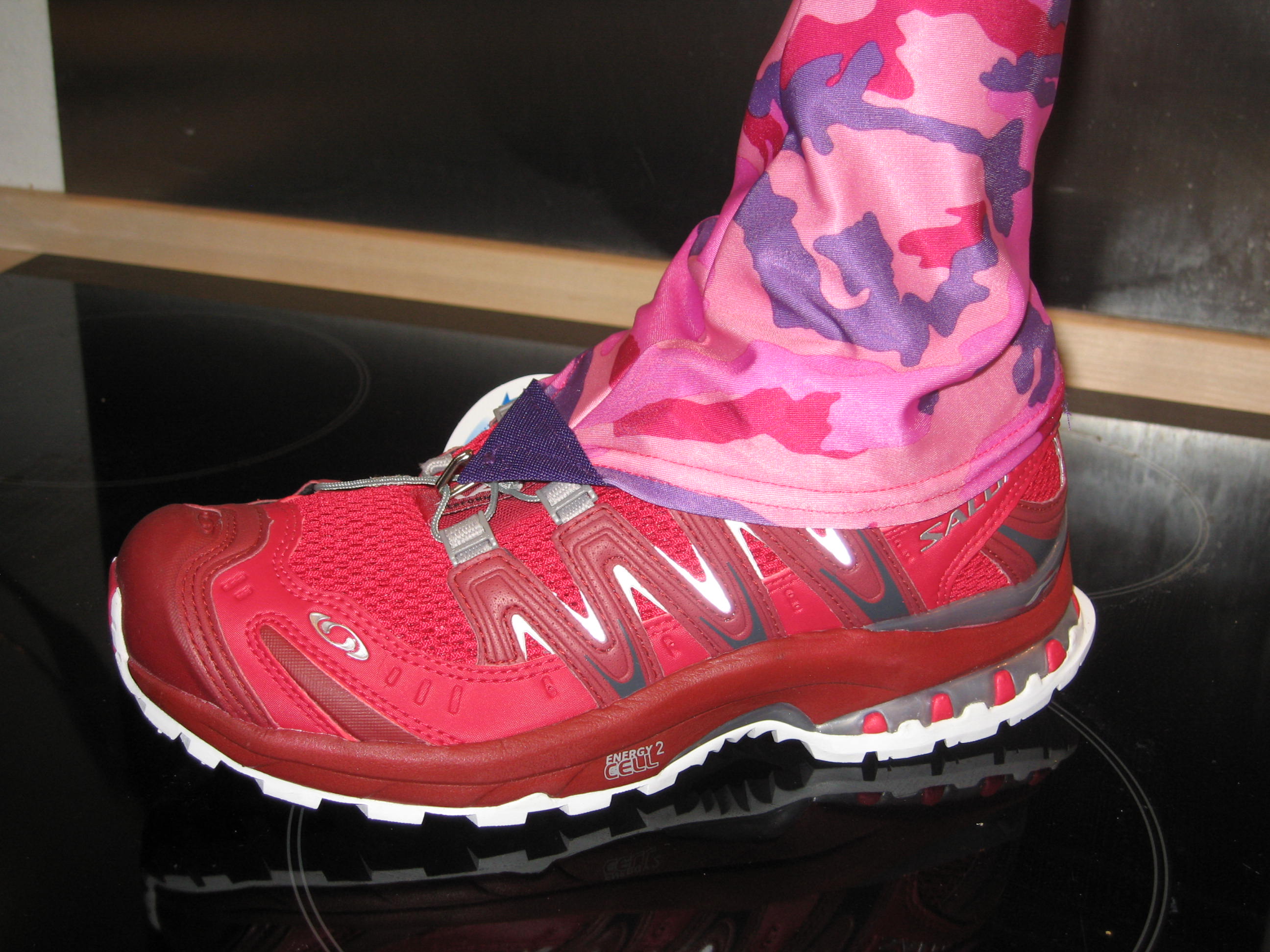 De lyserøde gaiters er en gave fra Jesper, og så må man jo gøre sit til at holde stilen. De skal nok gøre sig i Alperne til august. Man kunne næsten fristes til at sige, at de ville gøre sig til noget pink spandex ala Fuhrmann…. Men de ben er vist alligevel alt for lange til mine pygmæ ben.