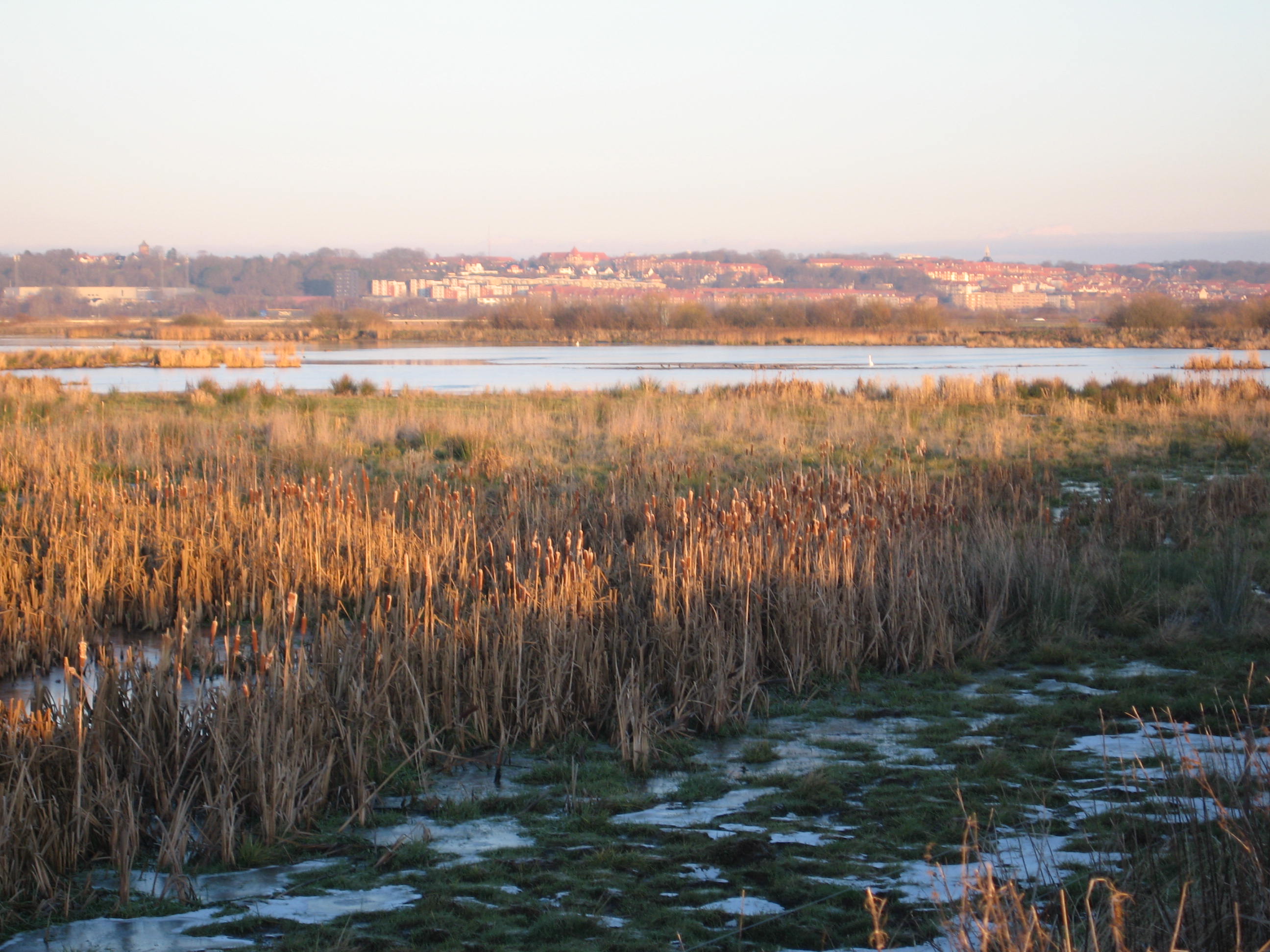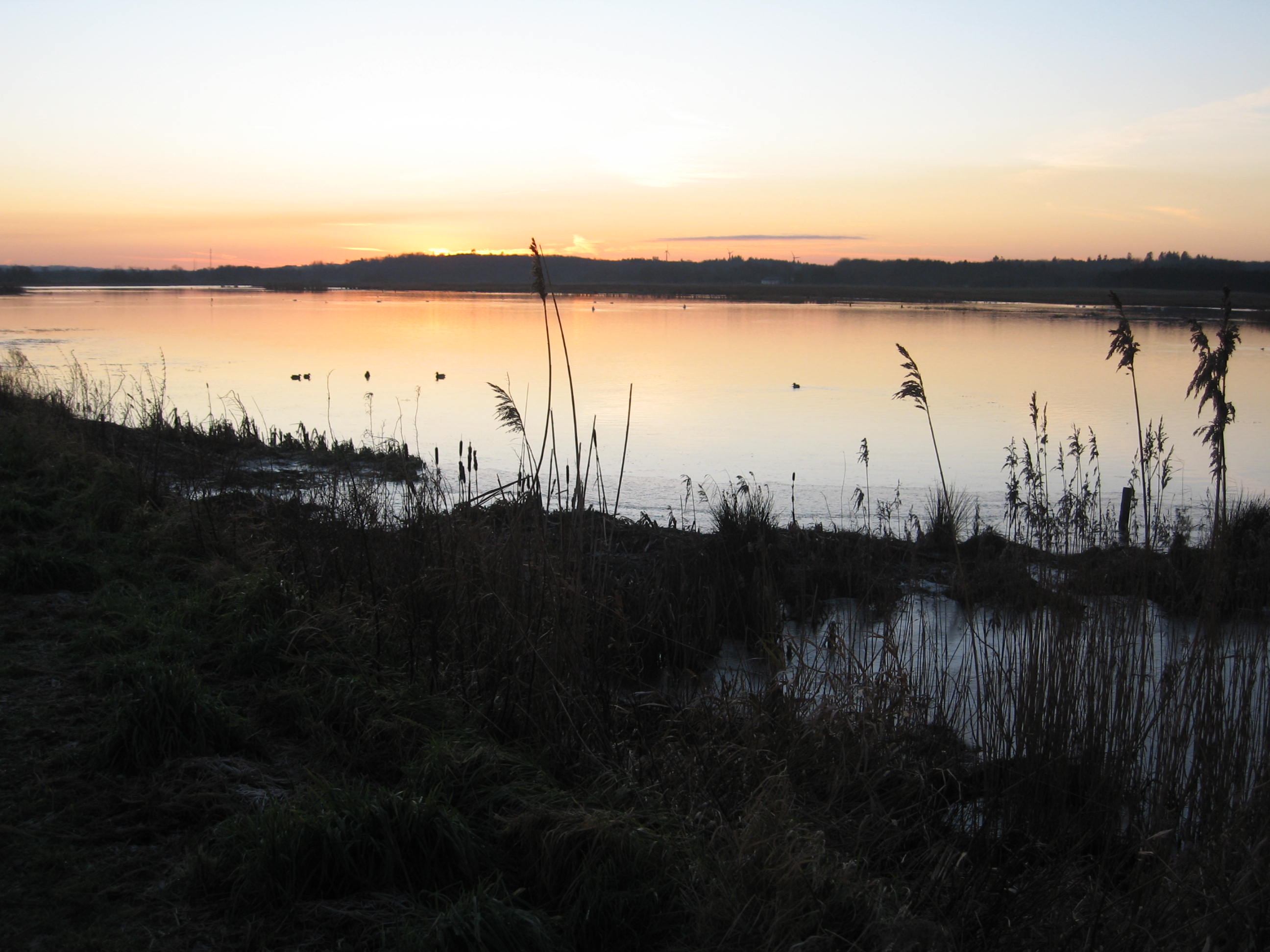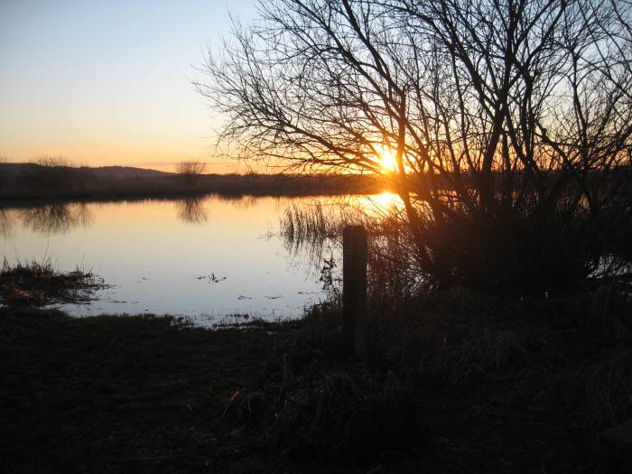 Men stien er der stadig. Den blev renoveret sidste år, og jeg elsker at løbe der,når man kan for vand. På begge sider af stien er vand, Gudenåen til den ene side og oversvømmede områder til den anden. I dag var det smukkeste lys malet ud over ådalen, så jeg tog kameraet i hånden og løb afsted i tide, før mørket sænkede sig helt. En ting er nemlig at løbe i mørke på fælleden, hvor der bare huser mordere og romaer, noget helt andet er Pramdragerstien, hvor der er iskoldt vand til begge sider og vrede pramdragerspøgelser. Som nok kunne spise sådan en lækkerbisken i tjekket løbetøj. Jeg nåede det, inden solen helt forsvandt, og I kan bare få billederne og høre violinerne i baggrunden.