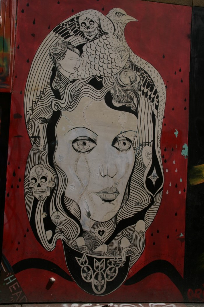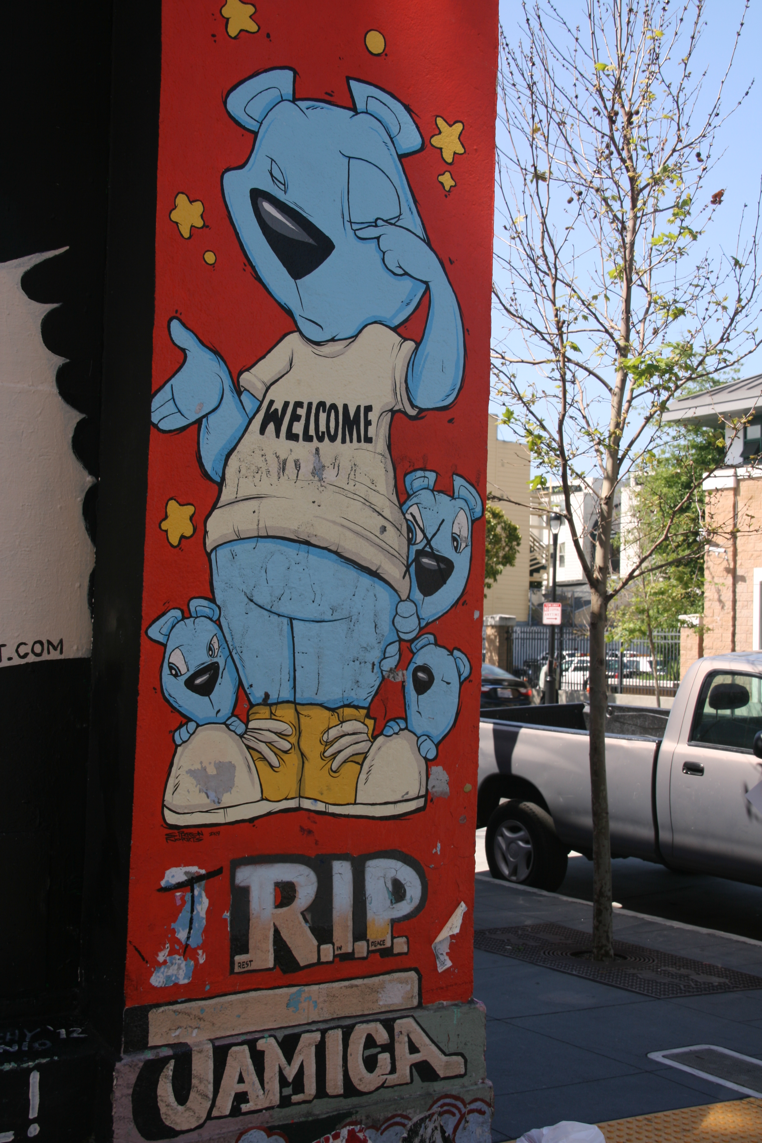 Mission Graffiti fortsatte, og jeg gik tilbage af 16th Street, som jeg havde forvildet mig alt for langt ned ad. Jeg cirklede frem og tilbage i området og vidste ikke helt, hvad jeg skulle holde øje med. Mon kunstværkerne ville gemme sig bag anonyme huse? Mon jeg var helt galt i byen? Og hvorfor tågede jeg i det hele taget rundt langt fra mit hostel, i stedet for at bruge mine sidste timer på at flå nyt tøj ned fra hylderne?