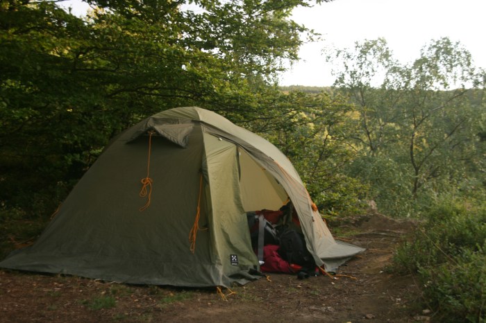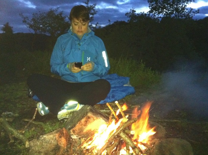 Vi vandrede kækt forbi den første vandpost uden at opdage den, og et par timer senere kunne vi med stigende uro begynde at ane bunden af vores vandflasker. Selvfølgelig havde jeg en plan. Og et kort, hvor jeg havde set en lejr med vand. Nu var det bare sådan, at vi mødte Den Perfekte Lejrplads en times tid inden vandposten. Mens vi diskuterede, om vi kunne nå det inden mørket, nåede vi det selvfølgelig. Vi tankede op med vand og traskede tilbage til Den Perfekte Lejrplads. Højt på Åsen med udsigt over rumpenissernes land. Her var en flad plet med plads til teltet, klipper at sidde på og sten nok til en lille bålplads. Her var SÅ perfekt.