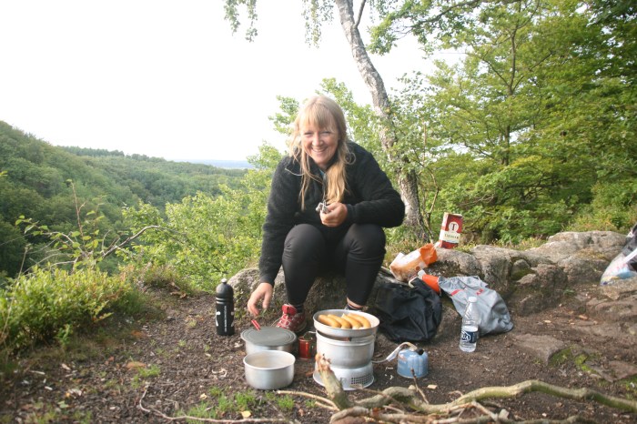 Sammen med Annamette Fuhrmann havde jeg for længe siden lavet en plan med rygsæk, telt og frisk luft, og lørdag morgen cruisede vi over broen i hendes lille røde bil. Med kaffe fra Ricco’s og højt humør begav vi os afsted mod svensk natur. Halvanden time senere stod vi der. Lidt udenfor Åstorp ved Skåneledens start. Pludselig virkede det helt latterligt, at jeg har benyttet mig så lidt af de svenske muligheder. Kullen er ubeskriveligt fedt, men der er så meget andet. Så fuldstændig tæt på. Kunne endda sagtens gå an med tog.