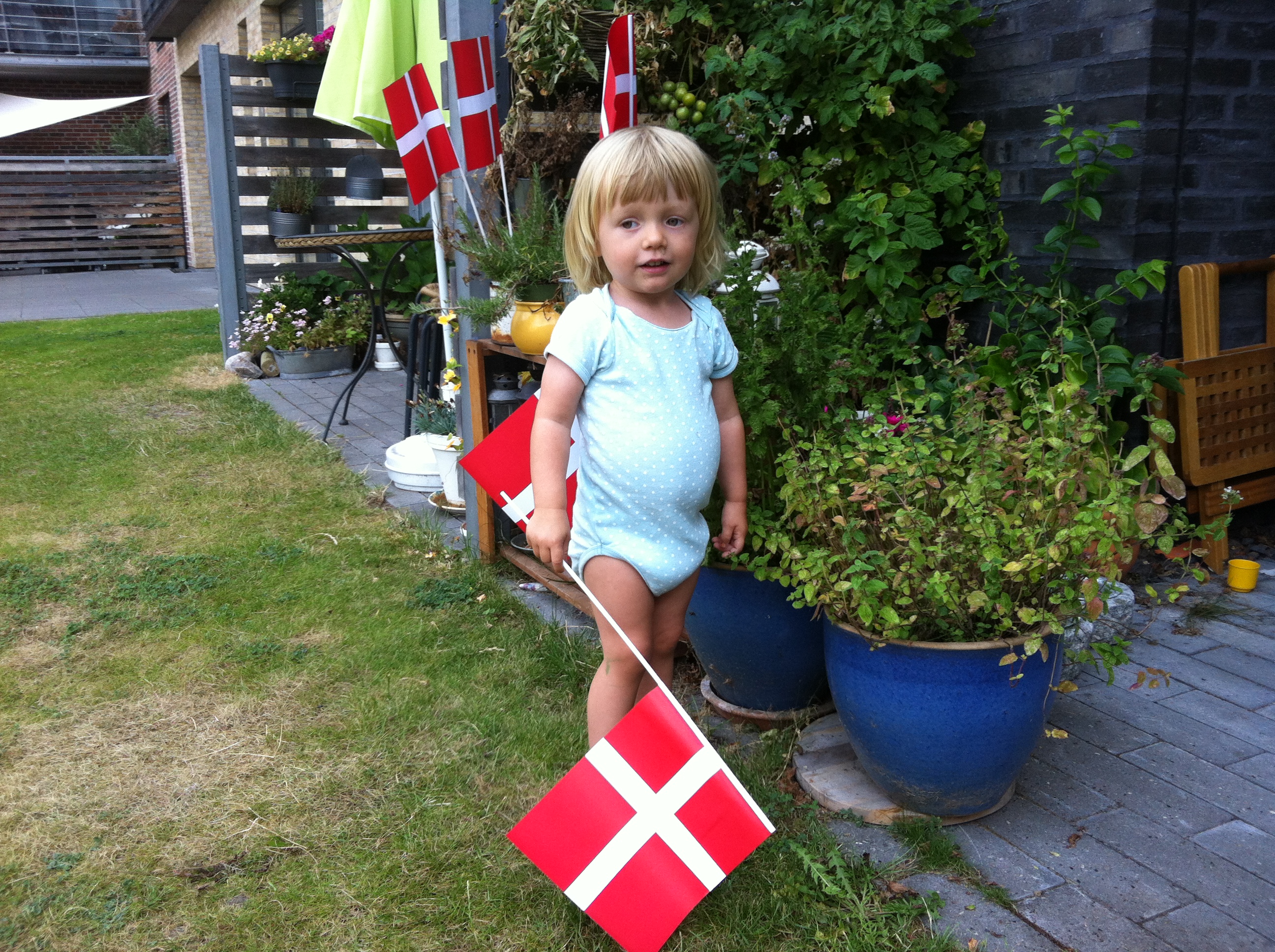 Fire timer senere tikkede en sms ind, at nu var lillesøster kommet til verden uden problemer. Vera og jeg gik i Irma og købte flag og pyntede op til festmodtagelse.