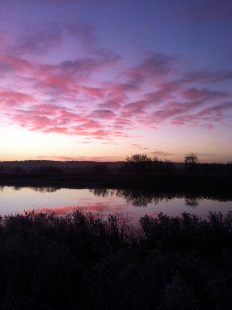 Mens jeg løb ud i morgenen sammen med solen langs Gudenåen lidt udenfor Randers, blev jeg ramt af magi. Farverne spillede på himlen over mig og i vandet ved siden af stien. Jeg følte mig fyldt af smukhed og var tæt på at flyde over, fordi netop jeg var så heldig at kunne løbe der en tidlig mandag morgen. På den første frostdag, hvor jeg stadig kunne elske iskrystallerne og den klare luft.