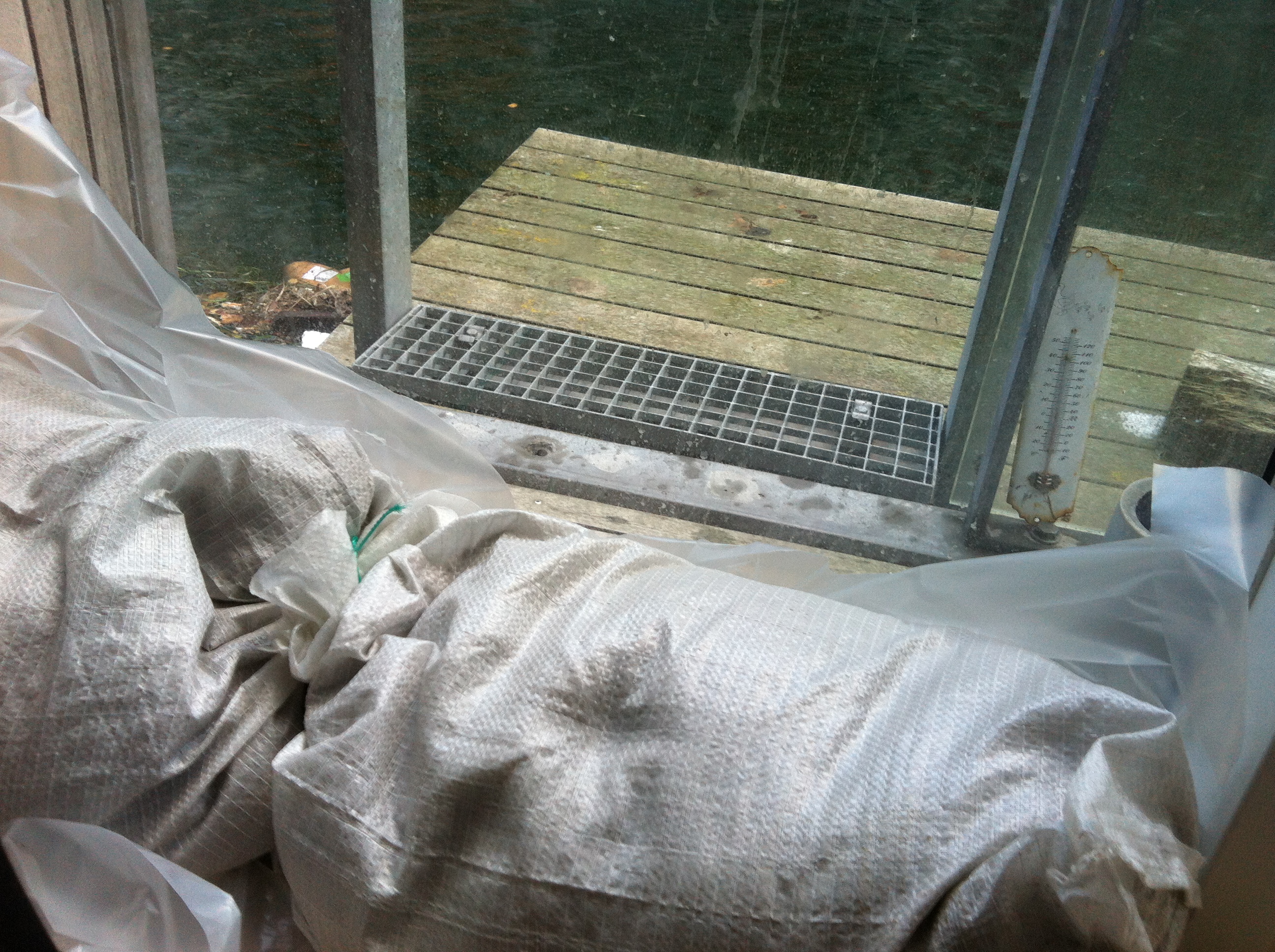 Vandet stod lige udenfor mit vindue. Ikke de sædvanlige to meter nede, men lige udenfor. Jeg kunne trippe direkte ud på min ponton. Nå da, tænkte jeg, og tændte for computeren. Hvor der lå flere mails fra udlejeren om stigende vandstand. Folk var mest bekymrede for deres biler, som stod parkerede i kældrene. Senere kørte politiet rundt og bad dem fjerne bilerne fra parkeringskældrene. Og Europark havde en fest resten af natten med at knalde de ulovligt parkerede biler.