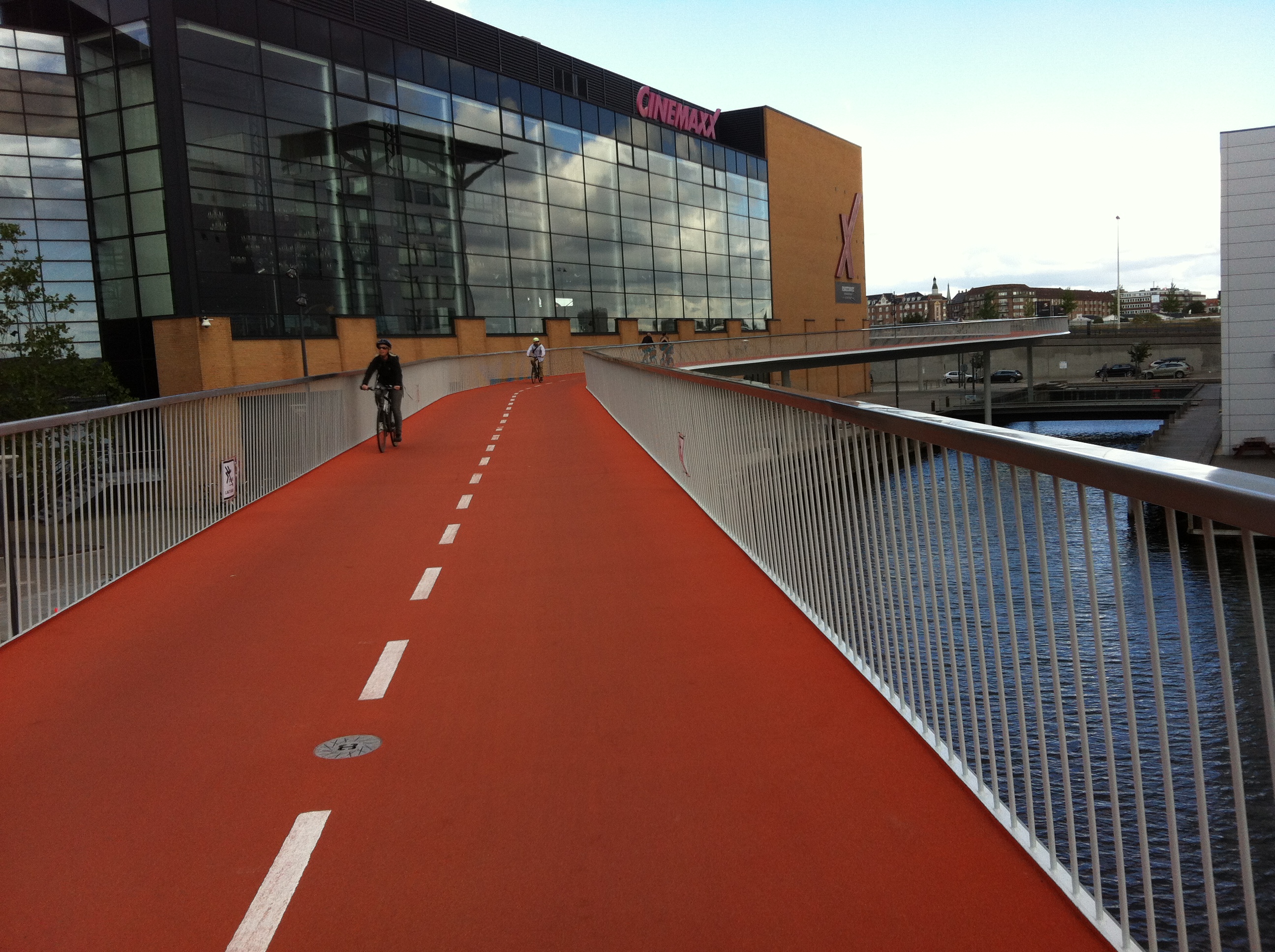 Nu cykler man højt over havneløbet og slynger sig som en slange udenom Fisketorvet. Hvis ikke det er en lille omvej værd….?