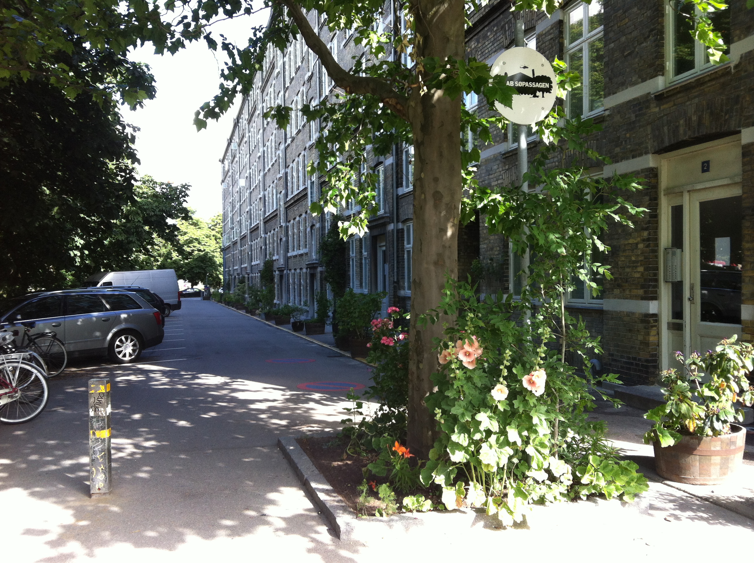 Efter Tagensvej svinger jeg væk fra søerne og gennem den fredeligste oase, Søpassagen. Her lever folk næsten uden trafik med blomster på fortovet.