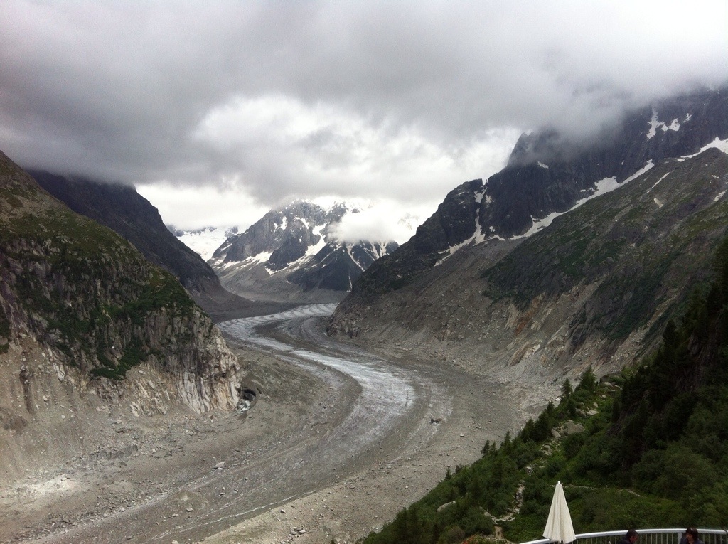 Aner ikke, hvornår der igen dukker netforbindelse op, så her er en bunke billeder i spredt fægtning fra løbeturene. Den indskrumpede ismotorvej midt i billederne er Mer de Glace, som engang var en kæmpergletcher. Hvis man ser godt efter, kan man tydeligt se, hvor højt gletcheren har gået. Før menneskeheden begyndte at tage livet af den.