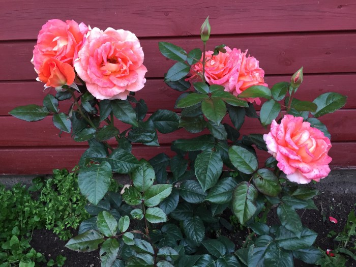 På min havegang mødte jeg Maj-Britt, der beundrede min nye rose. Hvor skal den stå, spurgte hun. Vi følger med i hinandens haver.