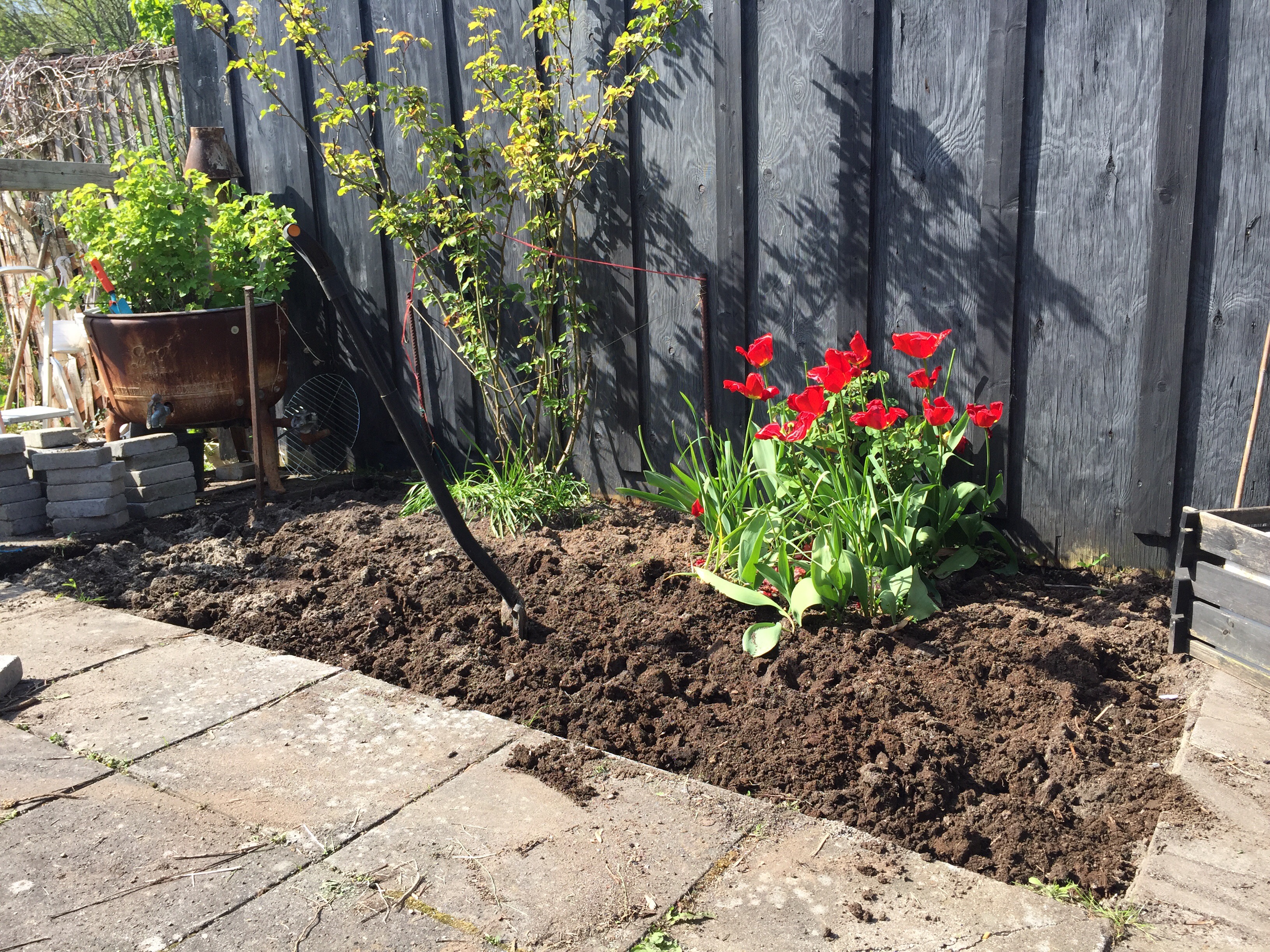 Derfor fik jeg flyttet ti store fortovsfliser og otte lidt mindre og skabt et af de hjørner i min have, som jeg har drømt om. Jeg fik ingen blodprop og intet hold i ryggen.