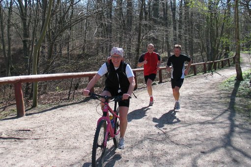 Cyklen åbnede verden for mig igen. Jeg kunne cykle langt væk hjemmefra. Jeg kunne cykle sammen med de drenge, jeg plejede at løbe med. Langt ud i skoven. Jeg kunne følge deres forberedelser til maratonløb og hurtige konkurrencer. Jeg kunne igen få dårlige vittigheder i metermål. Det blev en fast aftale, at jeg cyklede til Marselisborghallen hver lørdag for at følge med dem på deres lange lørdagstur. Og det var livseliksir. Den faste lørdagsaftale fik mig afsted. Hver lørdag. Jeg vidste, de ville blive bekymrede, hvis jeg ikke dukkede op. Så jeg kom. Og selv når jeg var dirrende af træthed, cyklede jeg let 30 km med dem. Og var gladere bagefter. Og mindre træt.
