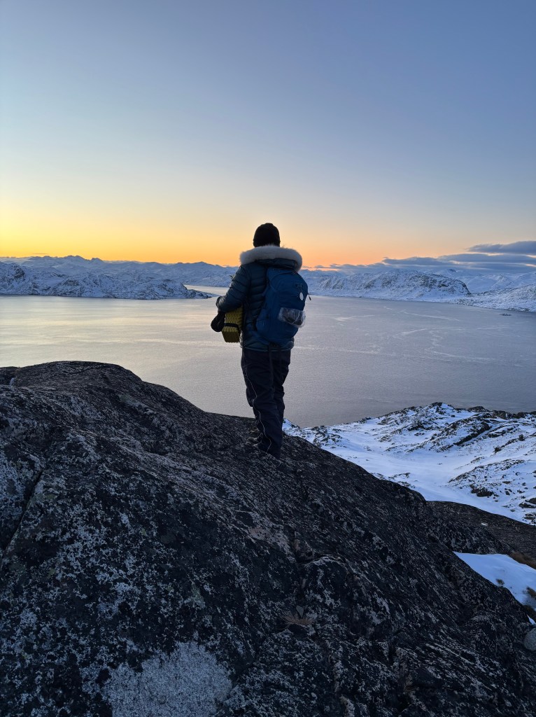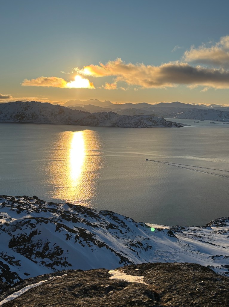 Da min kollega og gode ven, Mira, spurgte om jeg ville med på solopgangstur lørdag morgen, sagde jeg selvfølgelig ja tak. At følge den smukkeste solopgang på en lørdag morgen, hvor jeg skulle forlade Qaqortoq senere på dagen, kunne kun være et rigtigt vælg. Og det var det. Vi gik hjemmefra kl 6, gik op på fjeldet og sad der et par timer, mens solens stråler bredte sig.