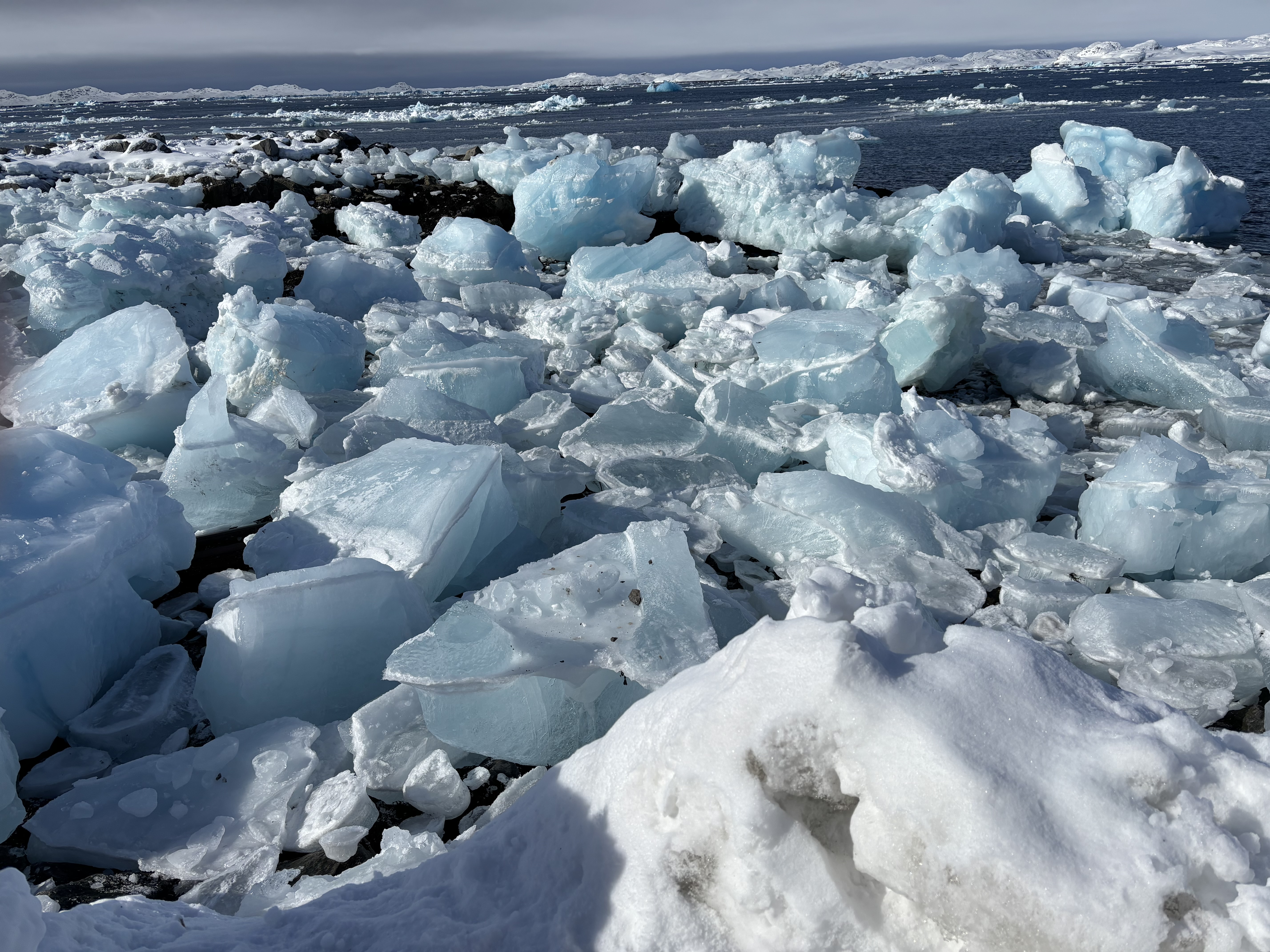 Flyet bragte mig i helt klart vejr over indlandsisen til Nuuk, hvor jeg blev installeret på et hotel med udsigt til kirkegården. Næste morgen strod jeg op sammen med min kollegas datter og gik til fælles morgenbadning ved Havets Moder, der er en statue, der bliver oversvømmet ved højvande.