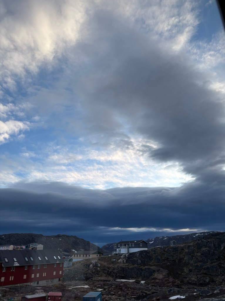 Vores første plan var at gå torsdag eftermiddag efter arbejde til en lille bygd, hvor Maria og jeg var sidste sommer. Et utroligt smukt og idyllisk sted med fåreholdere, som hedder Igaliku. Et sted jeg virkelig gerne vil tilbage til. Der er ca 60 km fra Qaqortoq, og vi lavede en aftale med en kaptajn på en targa, som kunne hente os søndag. Men kaptajnen trak lidt på det. Der var lovet hård østenvind hele weekenden, og det er ikke godt at sejle i. Vi holdt vejret og krydsede fingre, men da weekenden nærmede sig, og kaptajnen stadig ikke kunne love os noget, blev vi betænkelige. Thomas havde også fået en vagt orsdag til fredag morgen, så nu havde vi to dage til den lange tur. Det kan man godt. I godt vejr. Men så varslede universet storm over Sydgrønland fredag. Og der blev storm. Med flyvende trampoliner og nedblæste tage. Ikke engang taxaerne kørte ud.