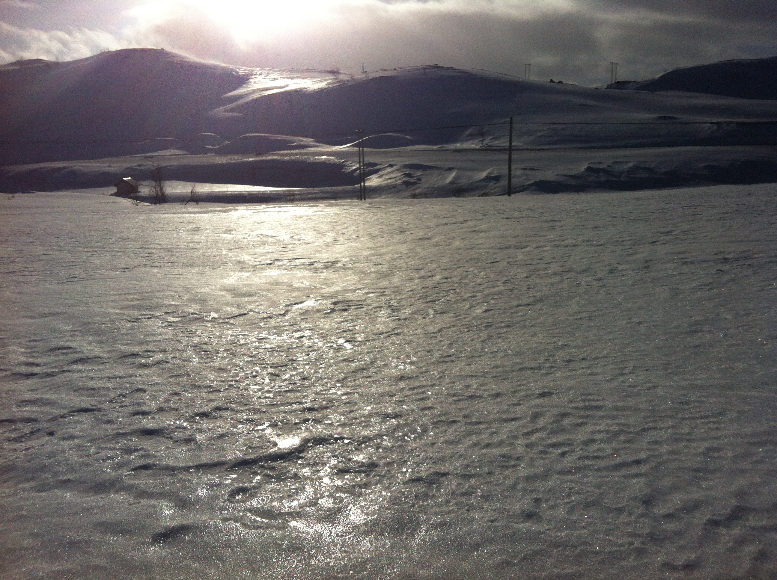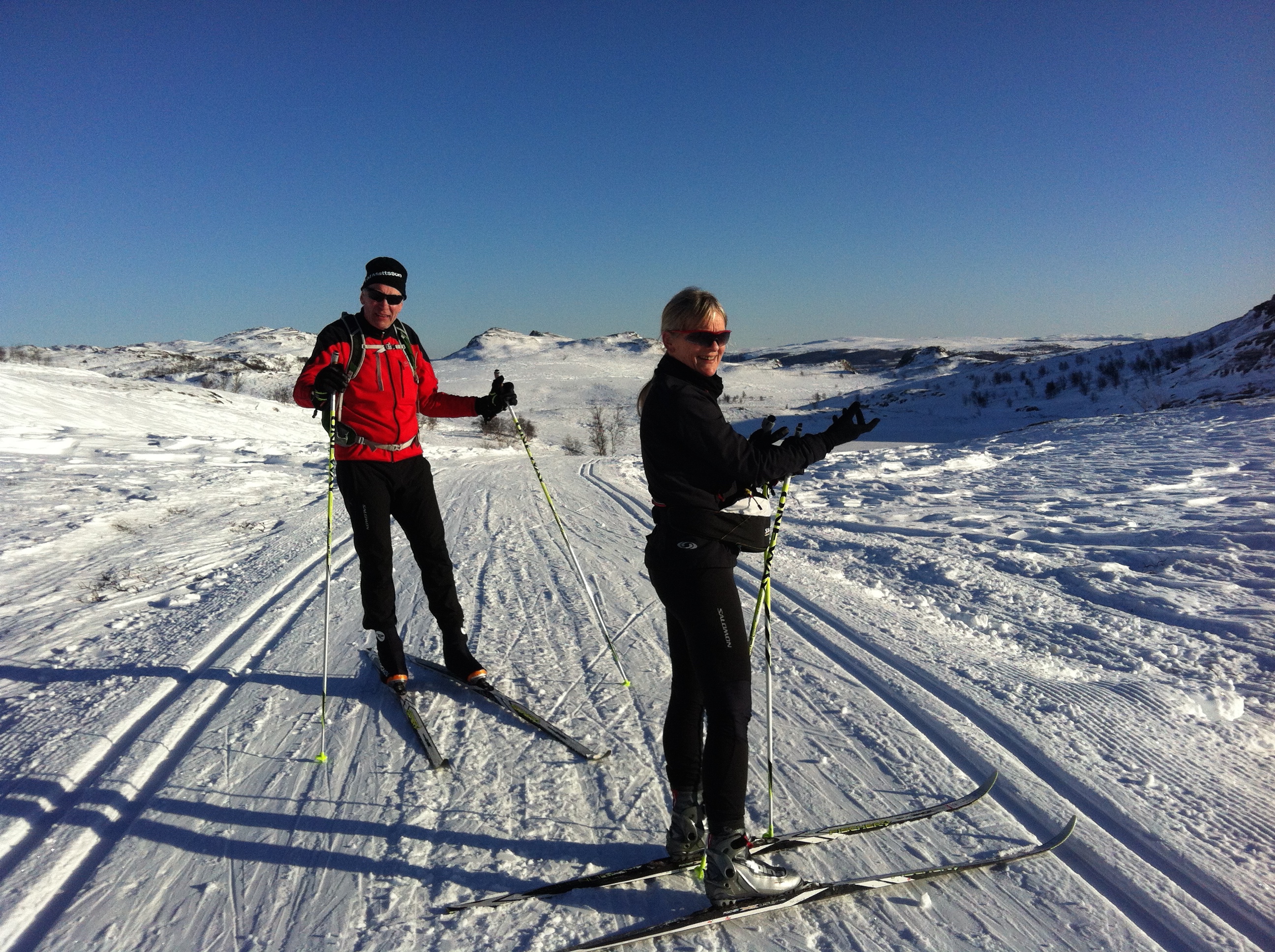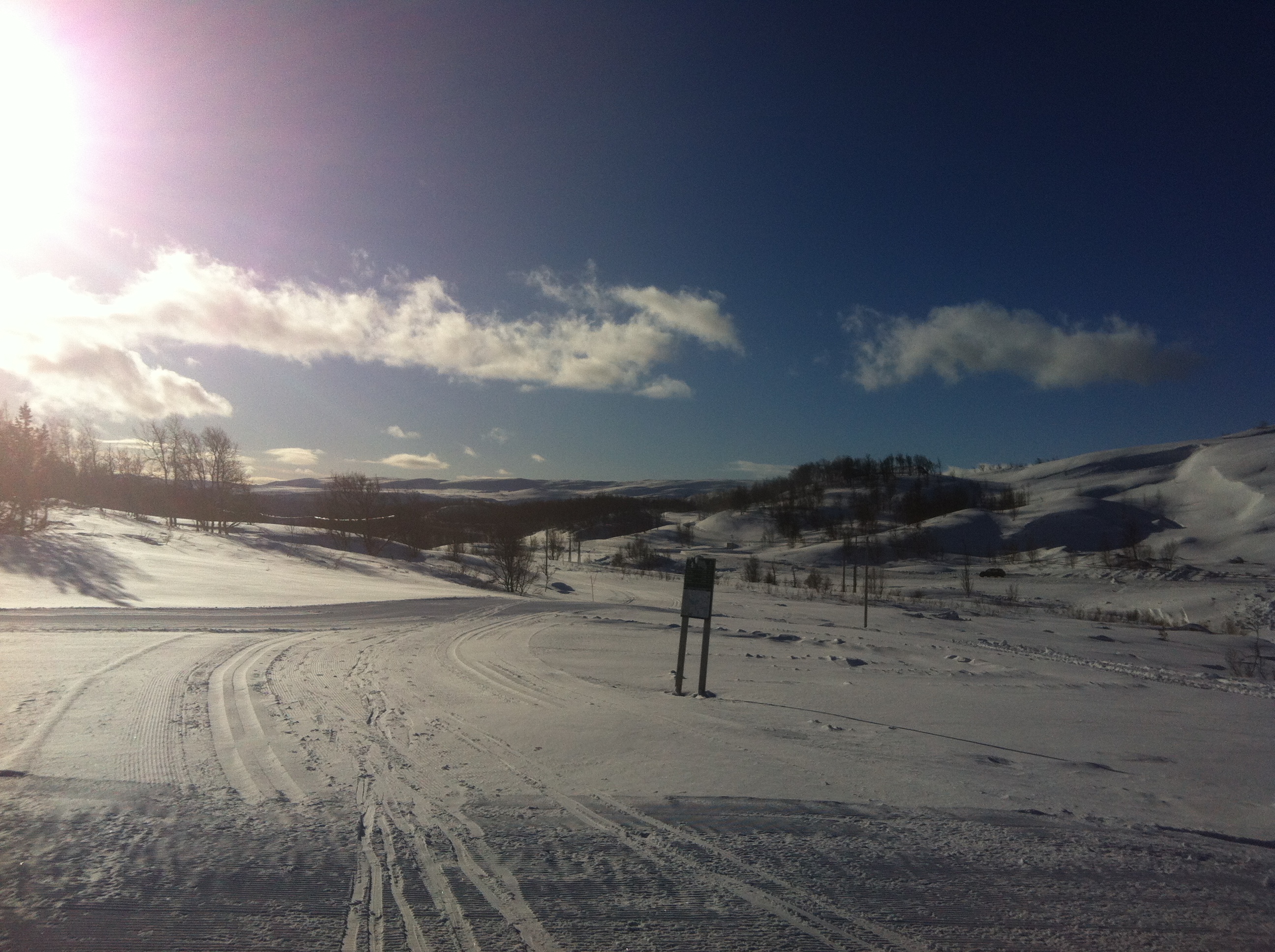 Nu tager jeg en pause i de norske fjelde langt fra alting. Vi lægger ud med høj sol og masser af sne. Det forlyder, at solen vist får lidt for meget magt i løbet af de næste dage. Men vi har feller med, så vi skal nok komme frem til den næste hytte. Og den næste hytte er det eneste, jeg skal koncentrere mig om. Foruden den skønhed, der er omkring mig.