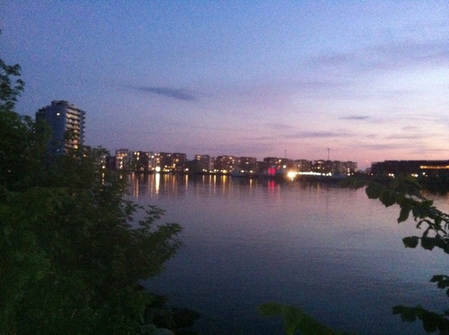 På med løbetøjet i den svindende dag og afsted. Der var smukt ud over vandet, så jeg bestemte mig for at droppe Amager Fælled og blive langs vandet på Valby-siden. Her var helt betagende smukt. Der var guld tværet ud over hele synsfeltet. Vandet, luften, himlen – alt var farvet i guld. Det var nærmest overvældende, så jeg ind i mellem måtte stoppe og suge al smukheden til mig. Og pludselig holdt jeg op med at være arrig og bare være tudeglad over at løbe i det gyldne landskab, mens det langsomt mørknede omkring mig. Da jeg endelig løb over slusebroen igen, var det helt mørkt. Vandet var stille, og alle lysene glimtede og spejlede sig.